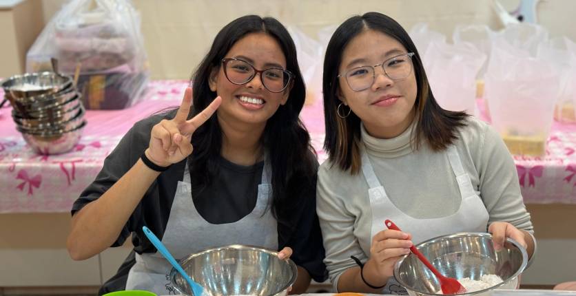 After making the batter, we poured it into a piping bag and piped it into donut moulds. The piping was also easy to follow, and the teacher did a demonstration before we tried it for ourselves, so it helped as a reference on how to pipe it nicely.